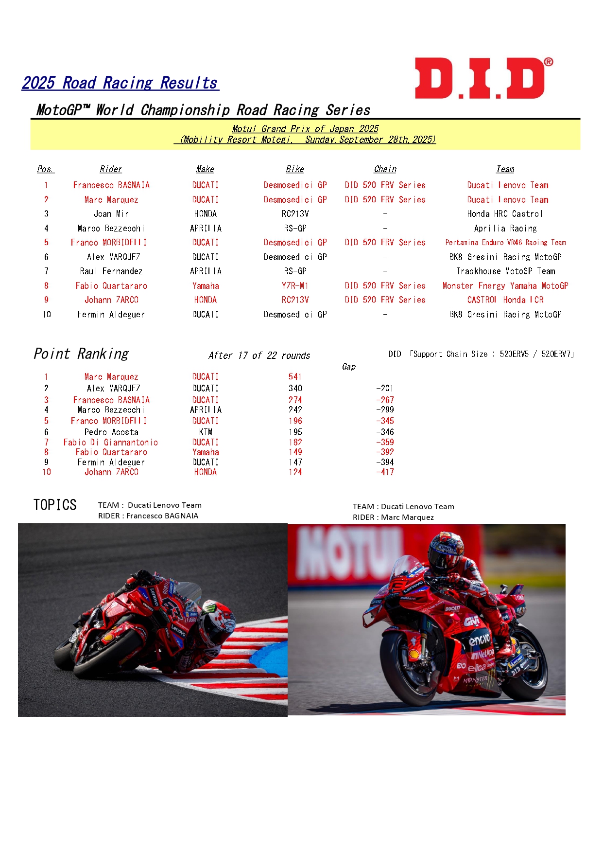 適合車種別&鏈條選用表,請參考D.I.D官網 https://didmc.com/chain/